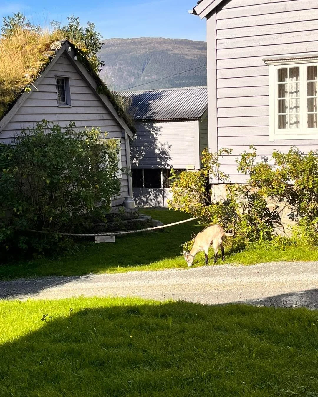 Olden Farm is beautifully situated between mountains over 1500 meters high. The location was chosen for safety reasons, as snowdrifts are common in the area.